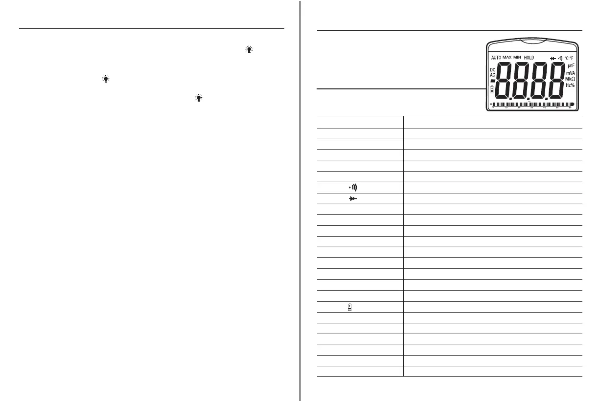 The backlight will automatically turn off after 10 seconds. The display can also be