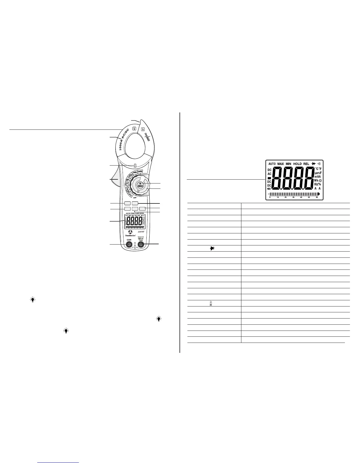 DATA HOLD BUTTON To freeze the LCD meter reading, momentarily press the