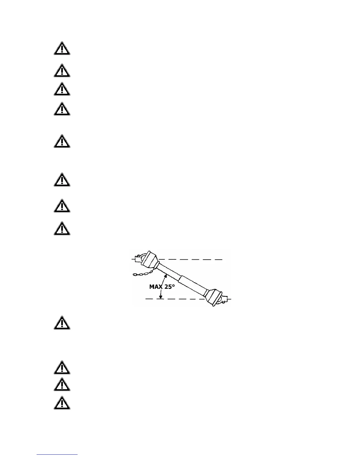 Working inclination of PTO driveline must not exceed 25° (see fig.1). Greater working
