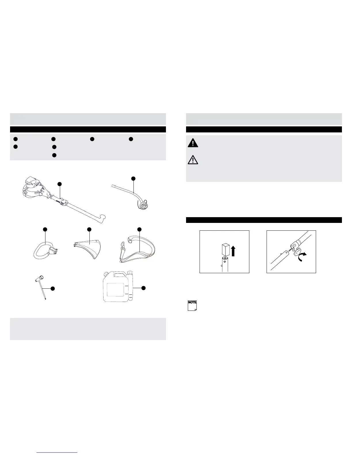 Inspect all the parts for signs of damage. Do not assemble the grass trimmer if you observe any
