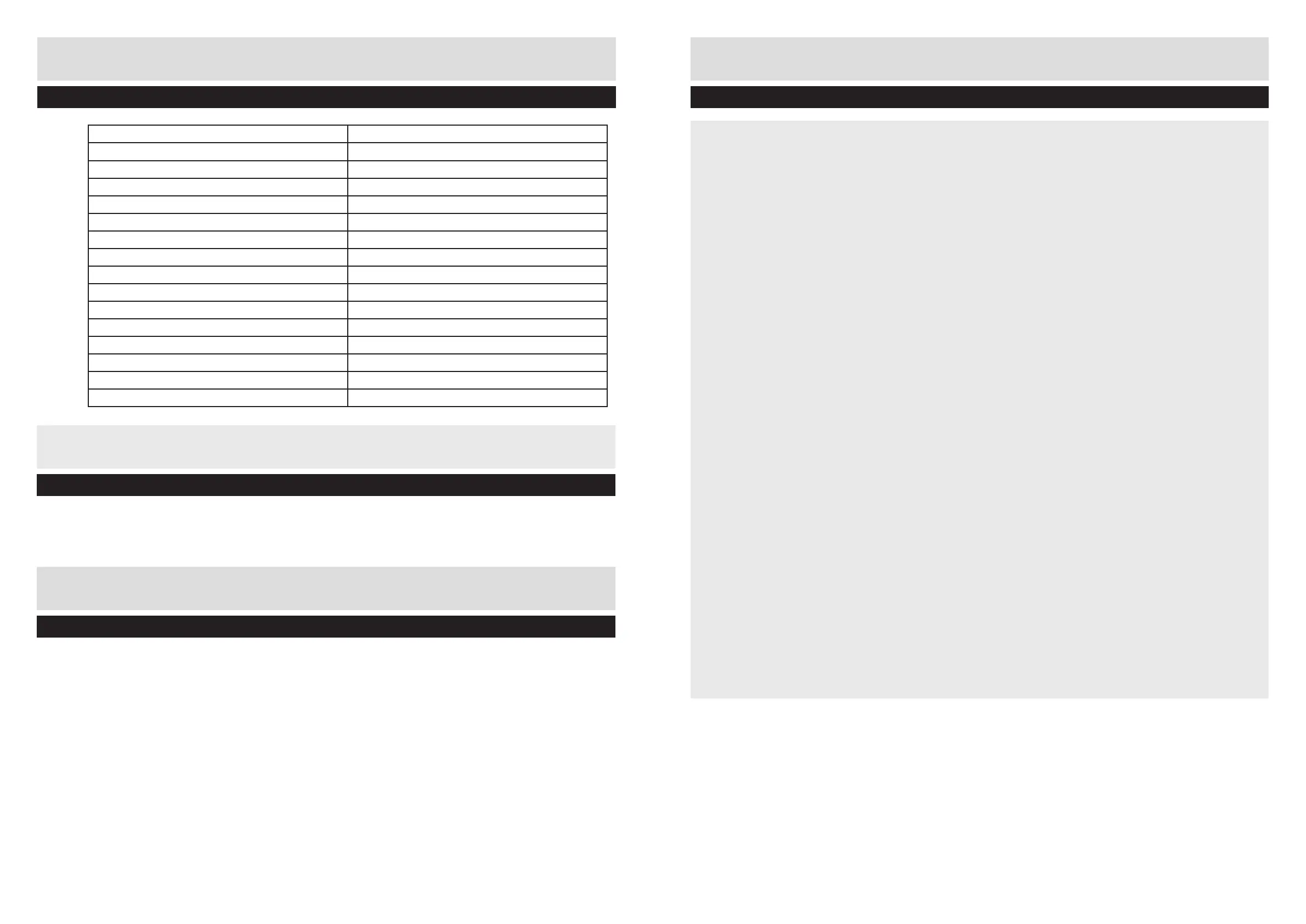 Technical Data Table