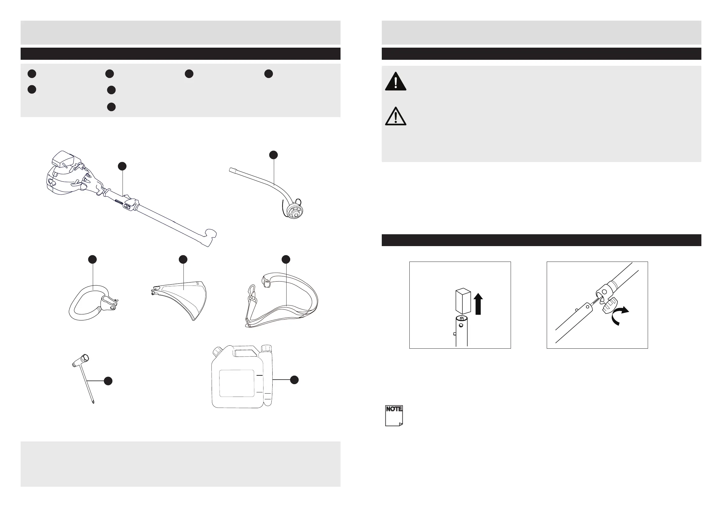 - Before assembling the grass trimmer, check all the parts indicated in the manual are in the box.