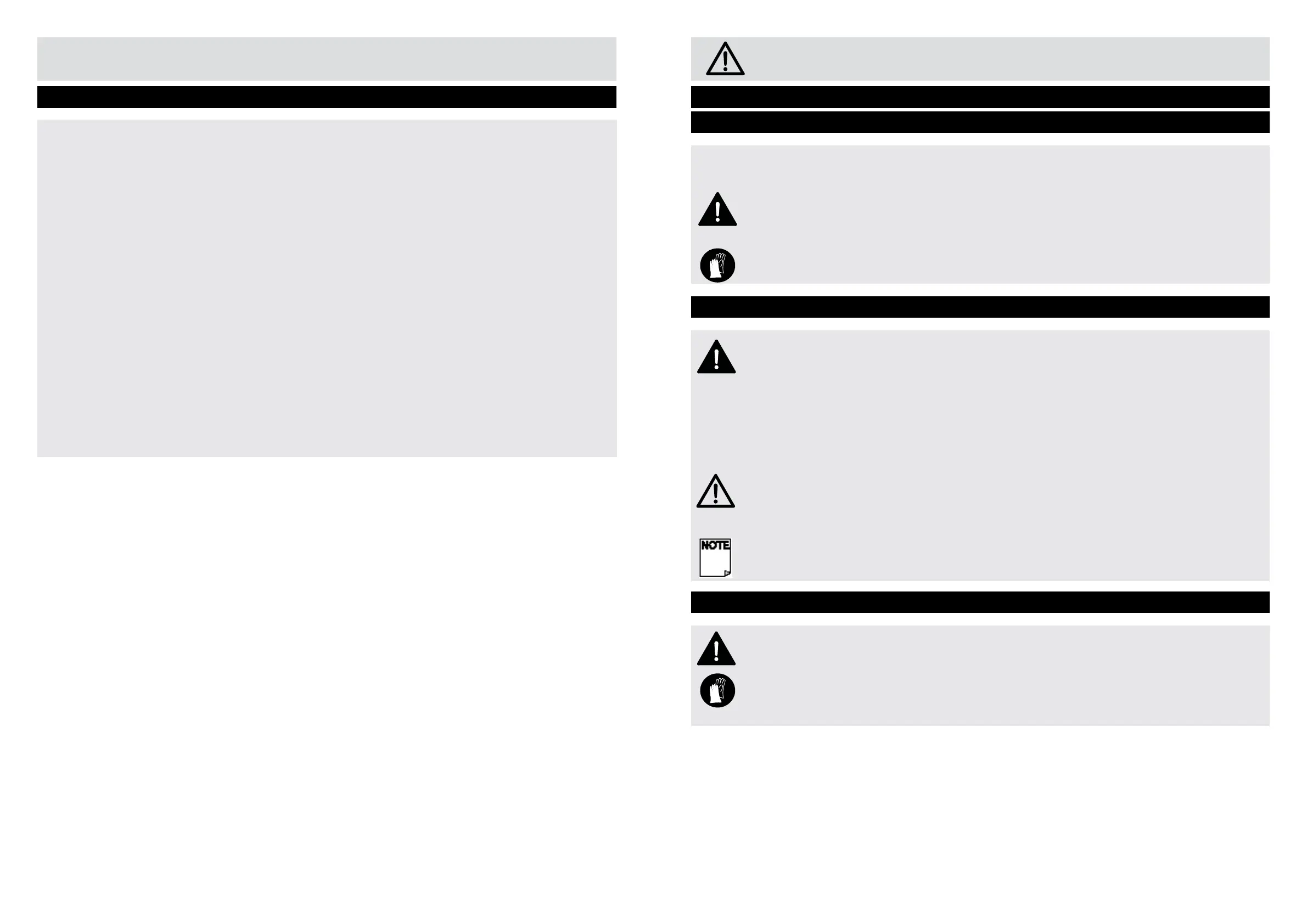 The following warning symbols appear throughout this assembly manual and indicate the appropriate