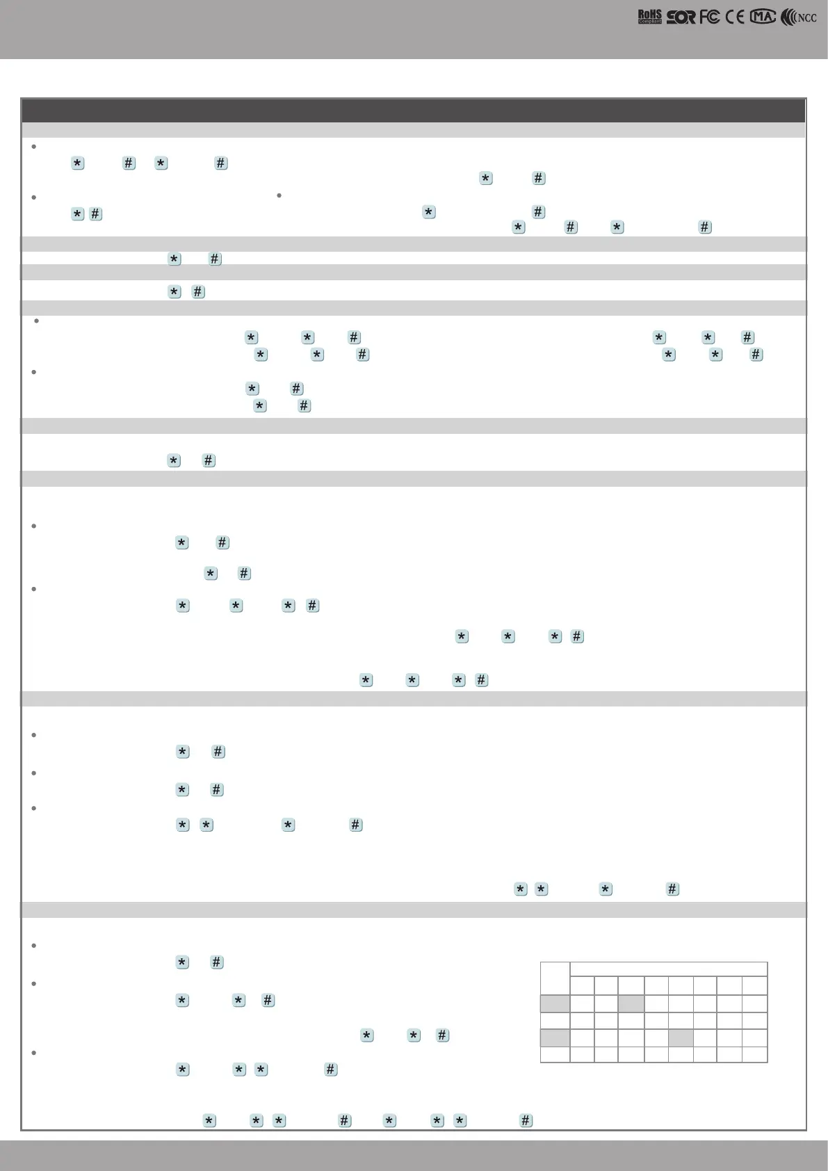 12 UUUUU PPPP [e.g. User Address: 00001 and pass code: 1234, input 12 00001 1234 ]