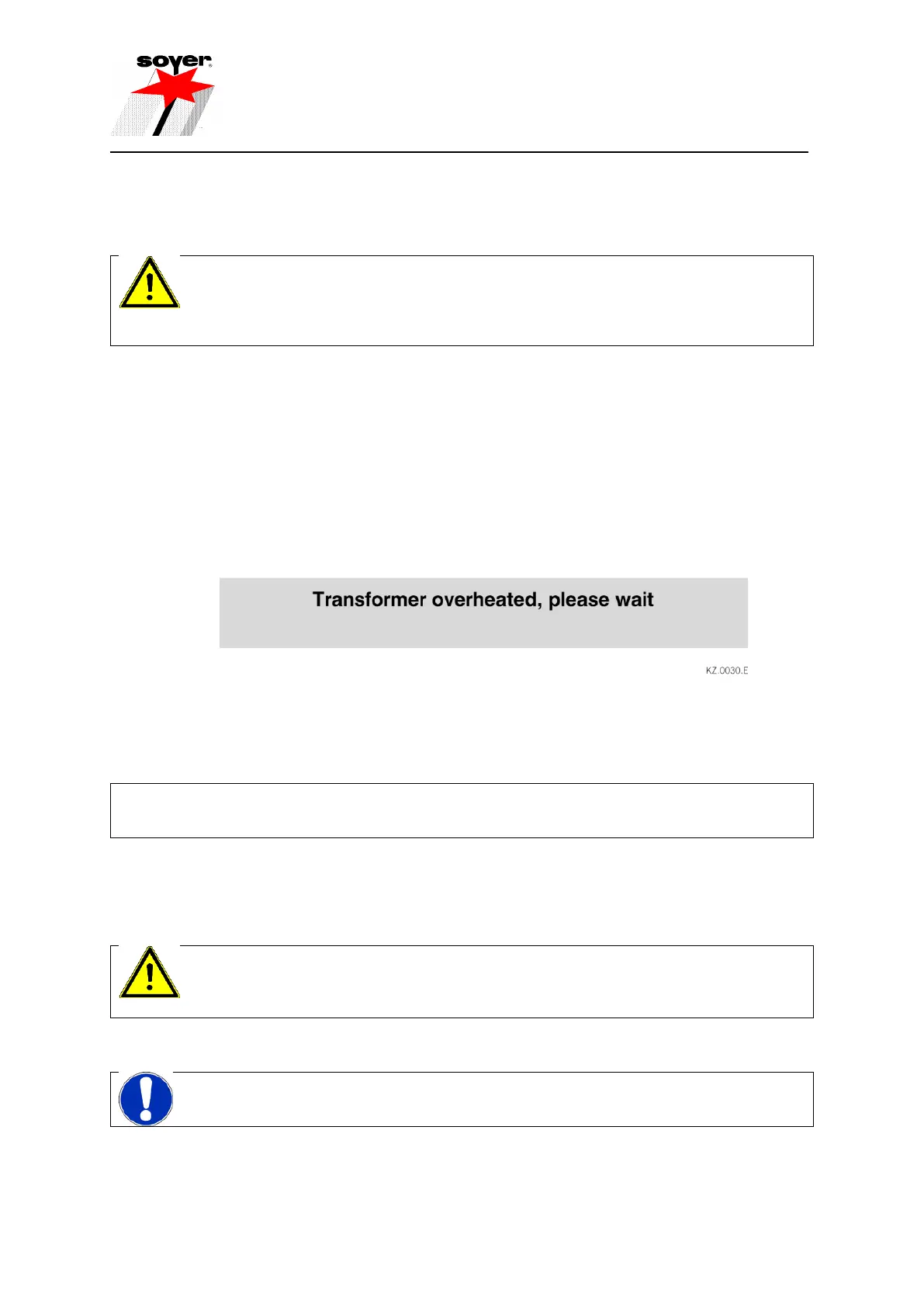 "Transformer overheated, please wait", is shown alternately with the current operation mode on the