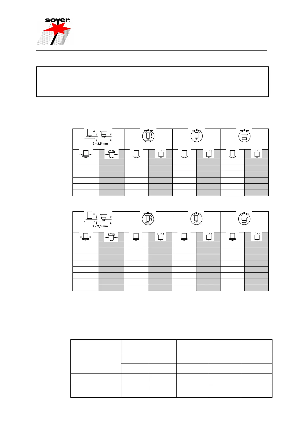 exclusively valid for studs supplied by SOYER. They may vary depending on the type of workpiece, the workpiece thickness,