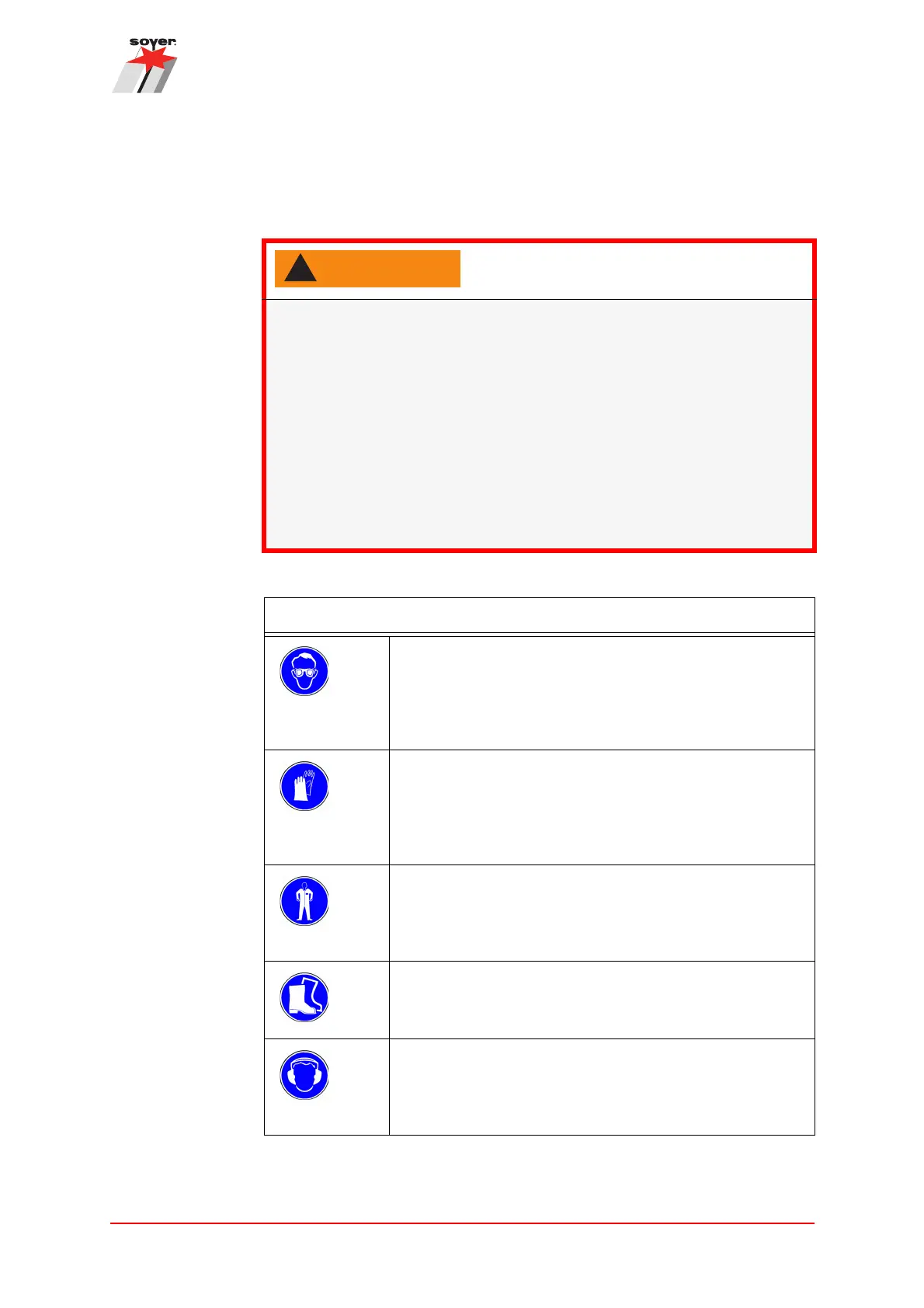 • Type and extent of the required protective equipment depend on the