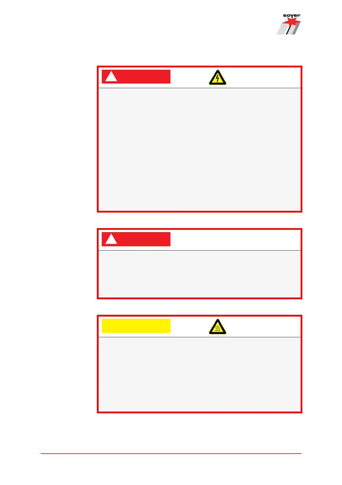 Danger of burns from hot surfaces
