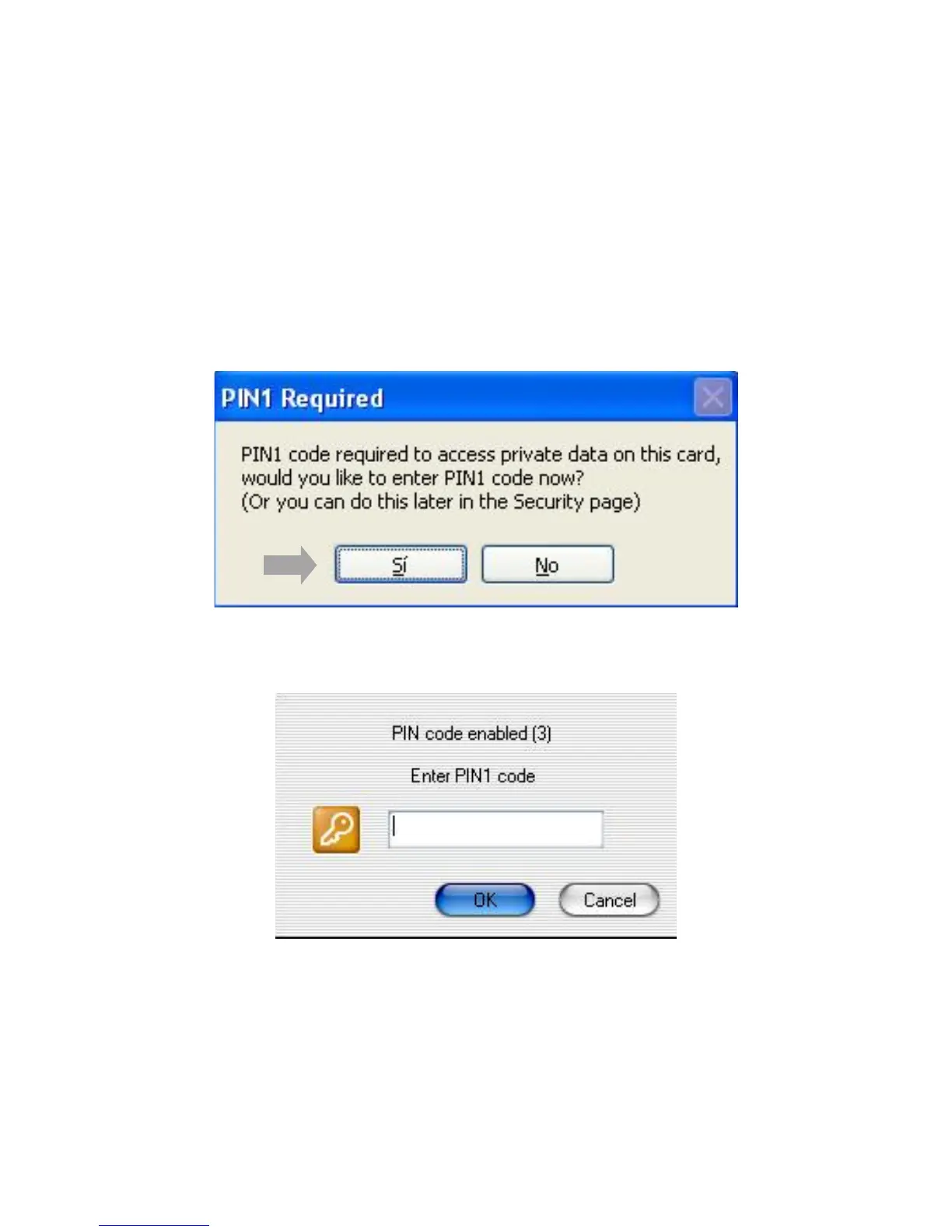 Click on the button “Si” and introduce your PIN number.