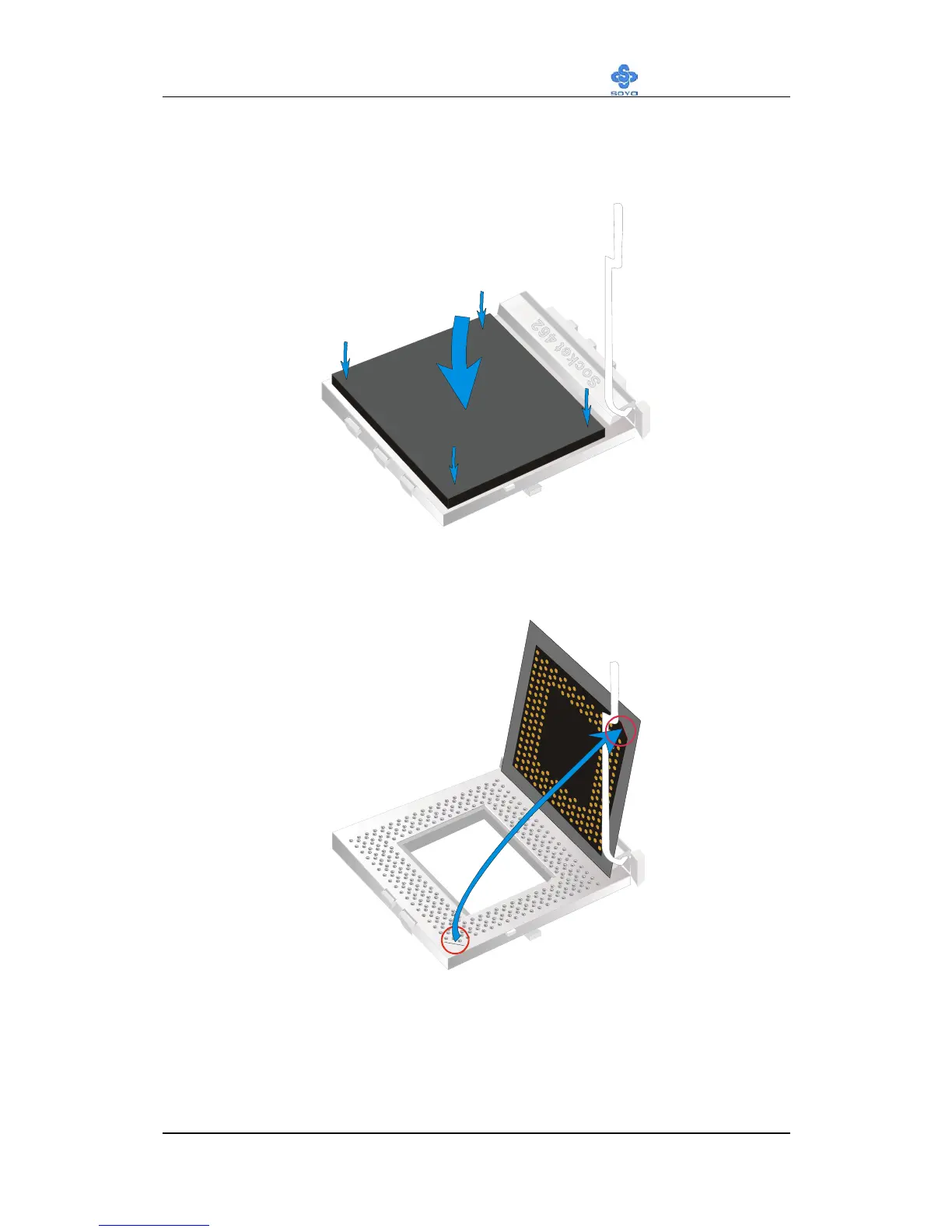 2. Align the blunt edge of the CPU with the matching pinhole