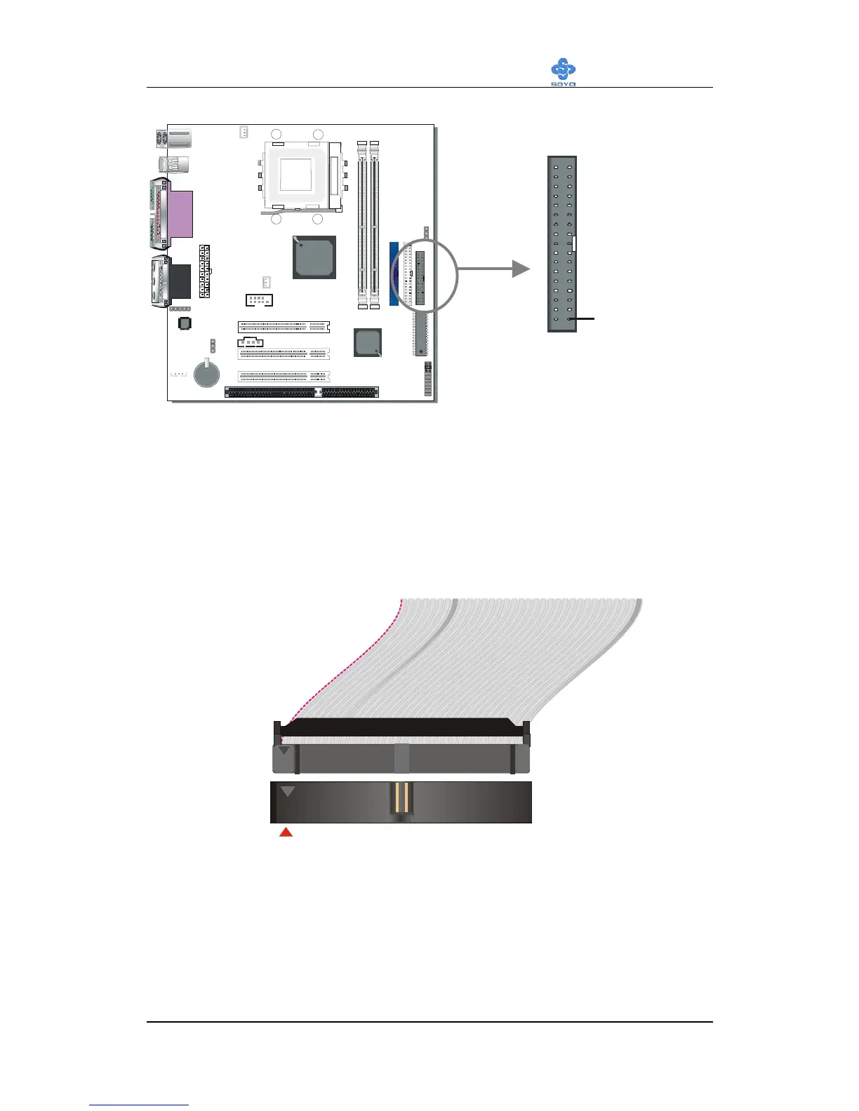 Connect one side of the 34-pin flat cable to the floppy drive and plug the