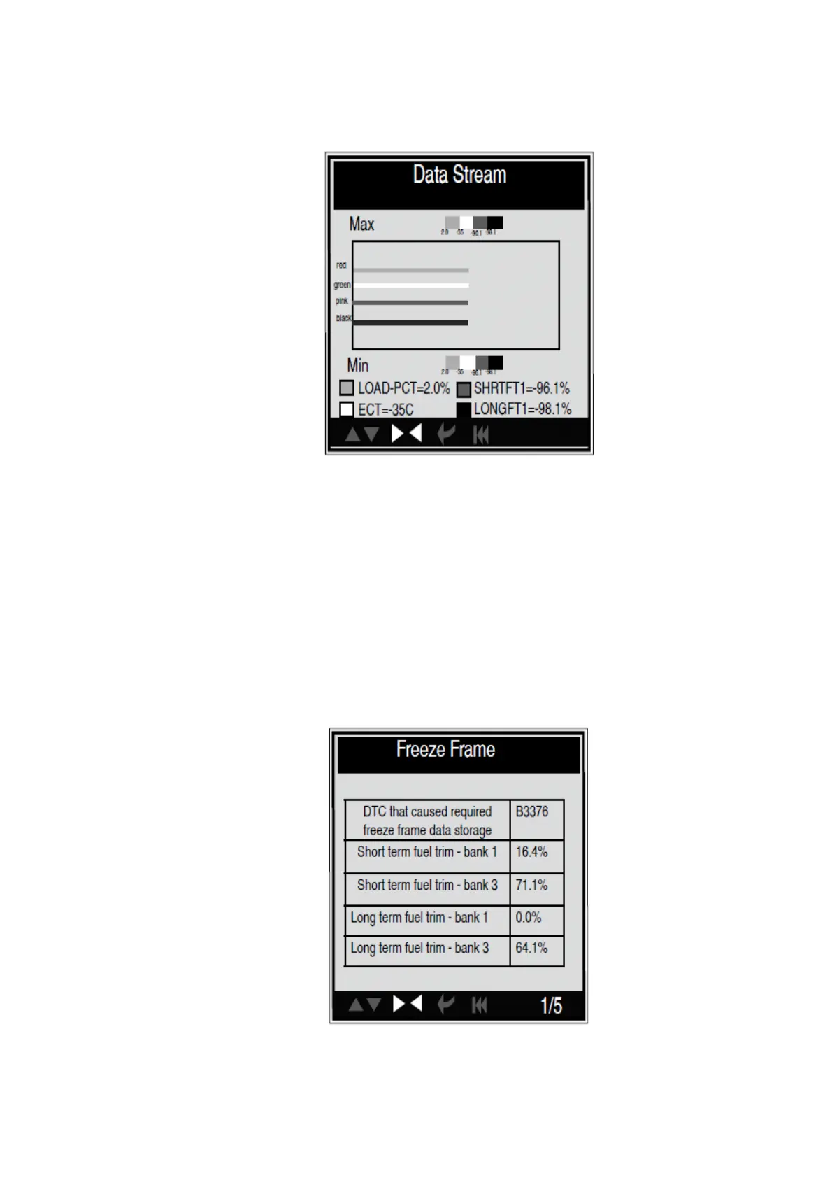 on vehicle. Select [Freeze Frame] in main menu interface, the screen will display the