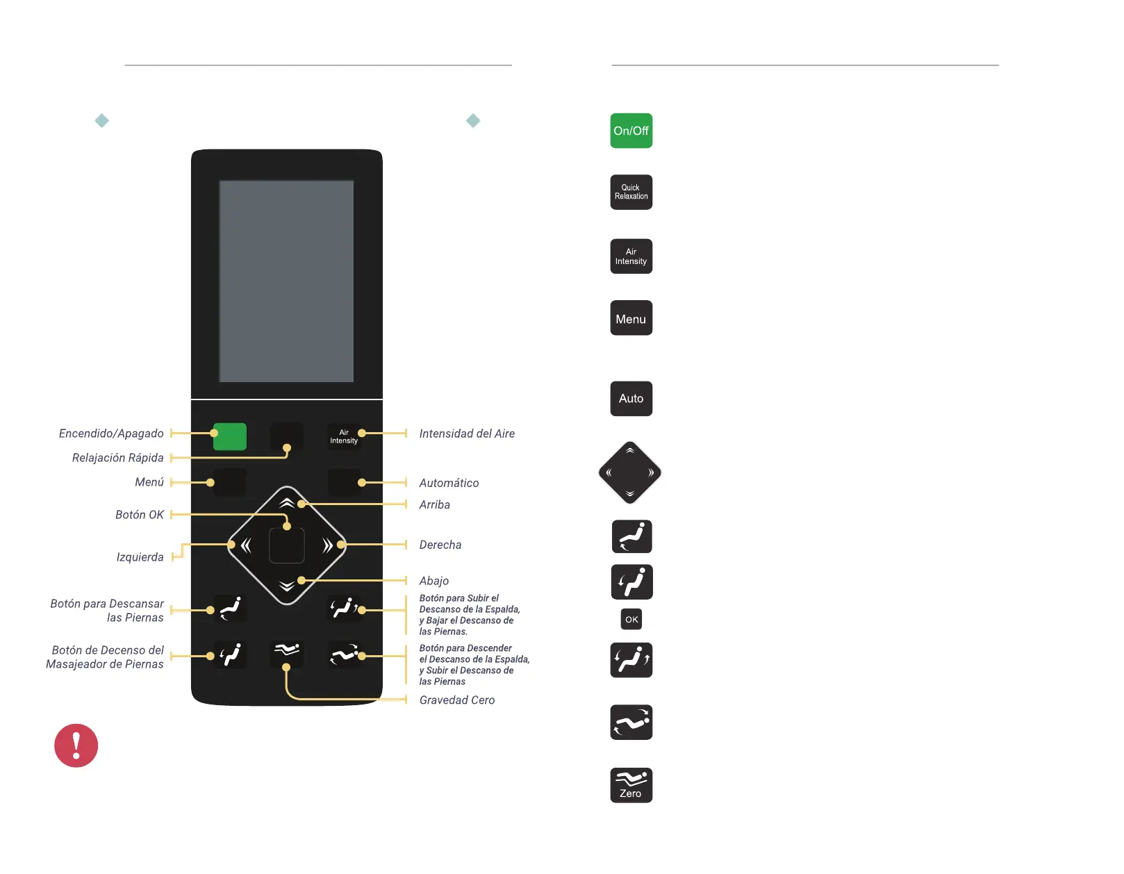 Botón de Decenso del Masajeador de Piernas: Mantenga presionado para mover