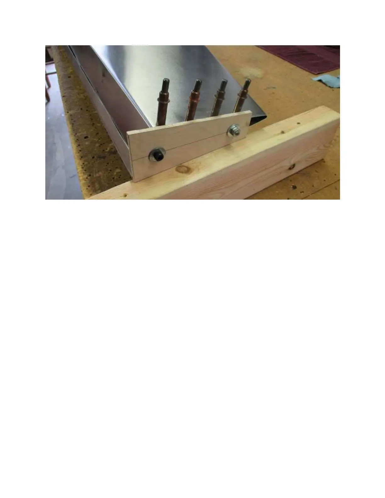 8. Working on a flat surface, rest the bottom end of the rudder on a 2” x 4” block and
