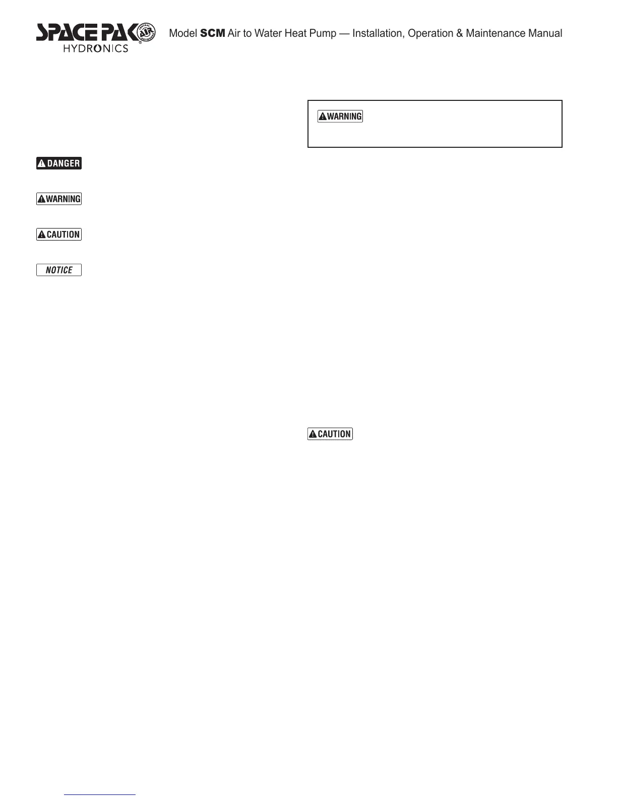 Model SCM Air to Water Heat Pump — Installation, Operation & Maintenance Manual