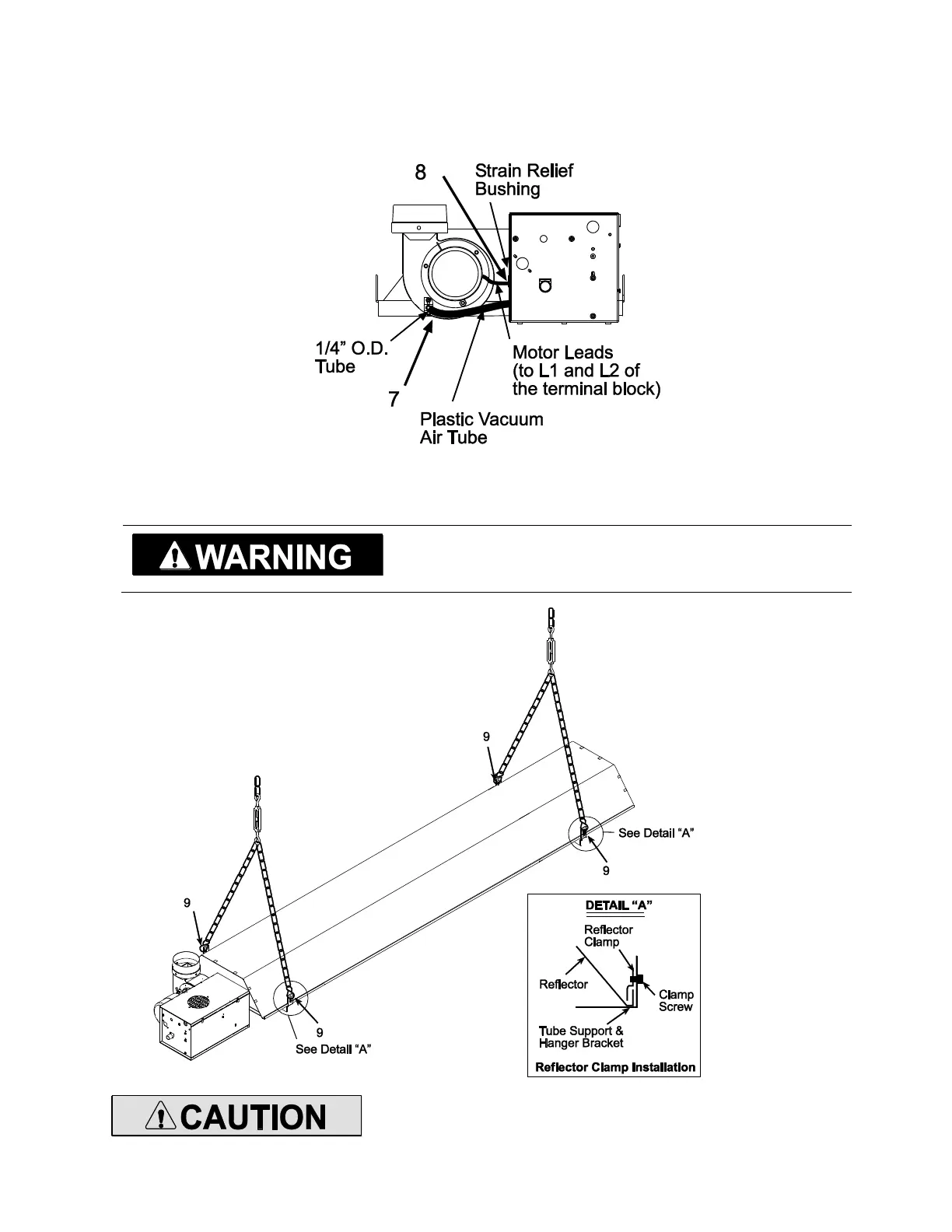 support/hanger brackets. Make sure the reflector can slide under the clamp during heater operation.