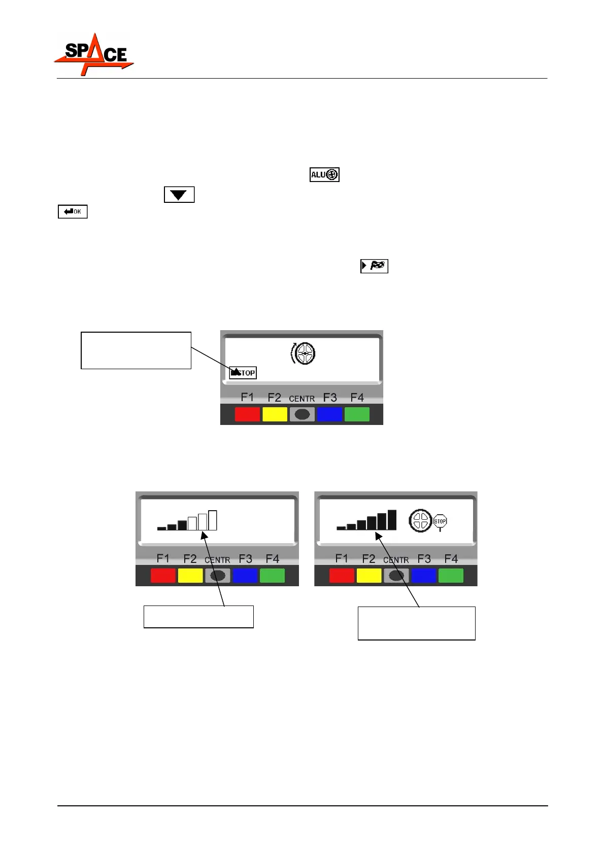 appearing on the screen. When the values appear, brake the wheel by means of the pedal
