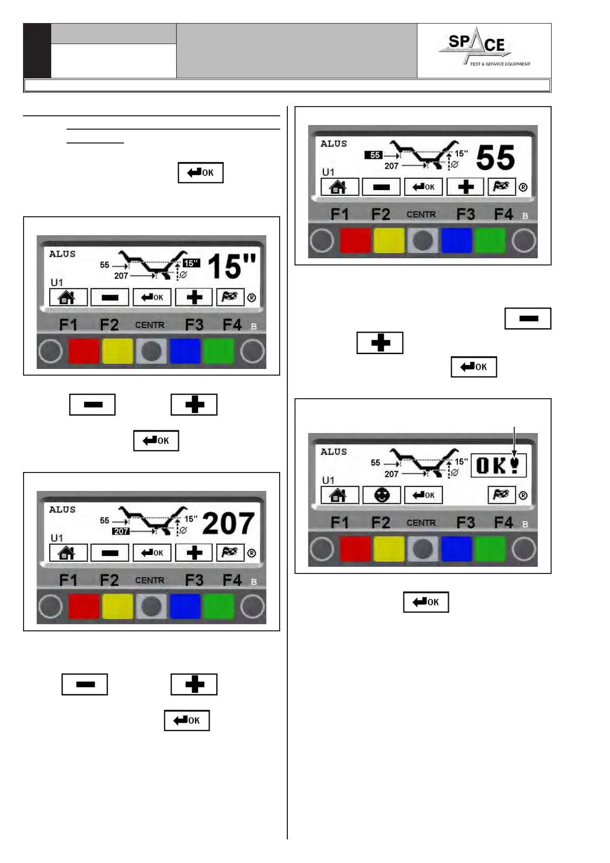 achieved. Press “CENTRAL” key to confirm.