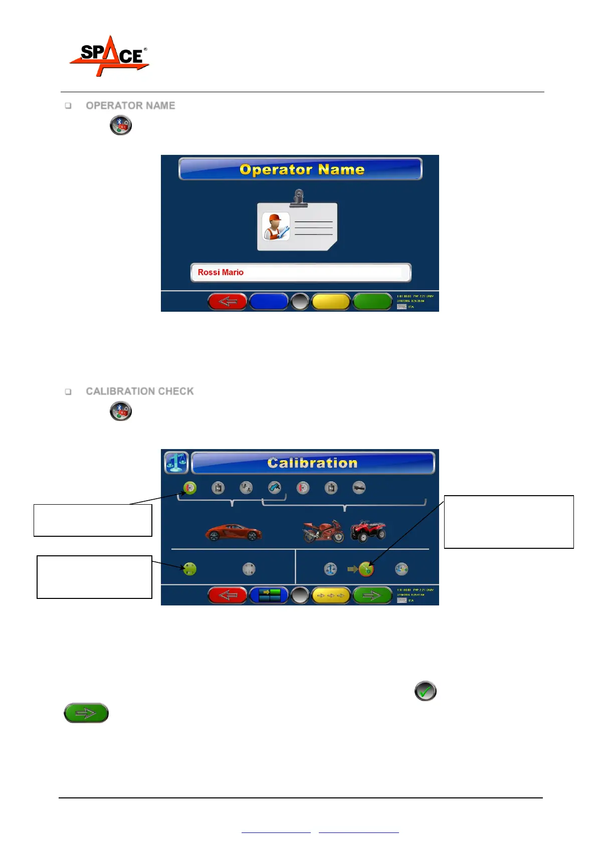 The calibration is reserved to authorized SPACE S.R.L. personnel, the operator can only check the