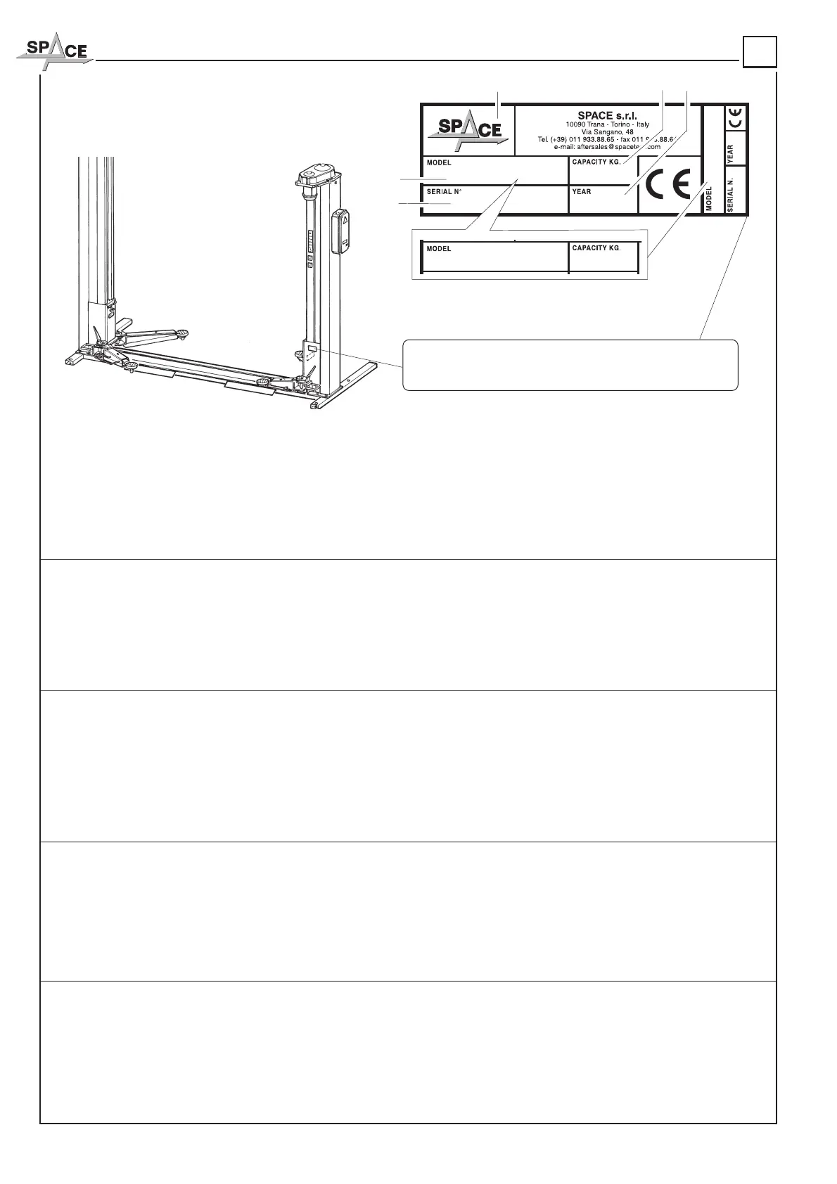 AVVERTENZA: Nel caso in cui per motivi accidentali la targa di identificazione risultasse
