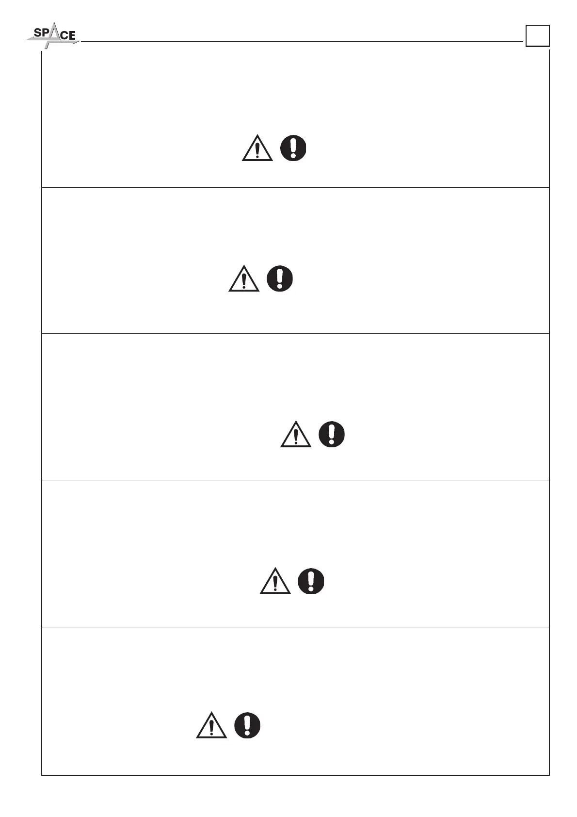 NEL CASO CHE QUESTI PITTOGRAMMI SI DANNEGGINO È NECESSARIO SOSTITUIRLI RICHIEDENDOLI ALLA SPACE.