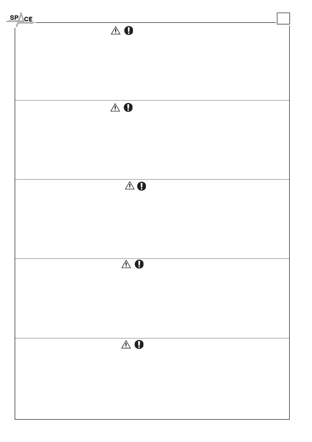 - n’utiliser que des accessoires et des pièces de rechange SPACE;