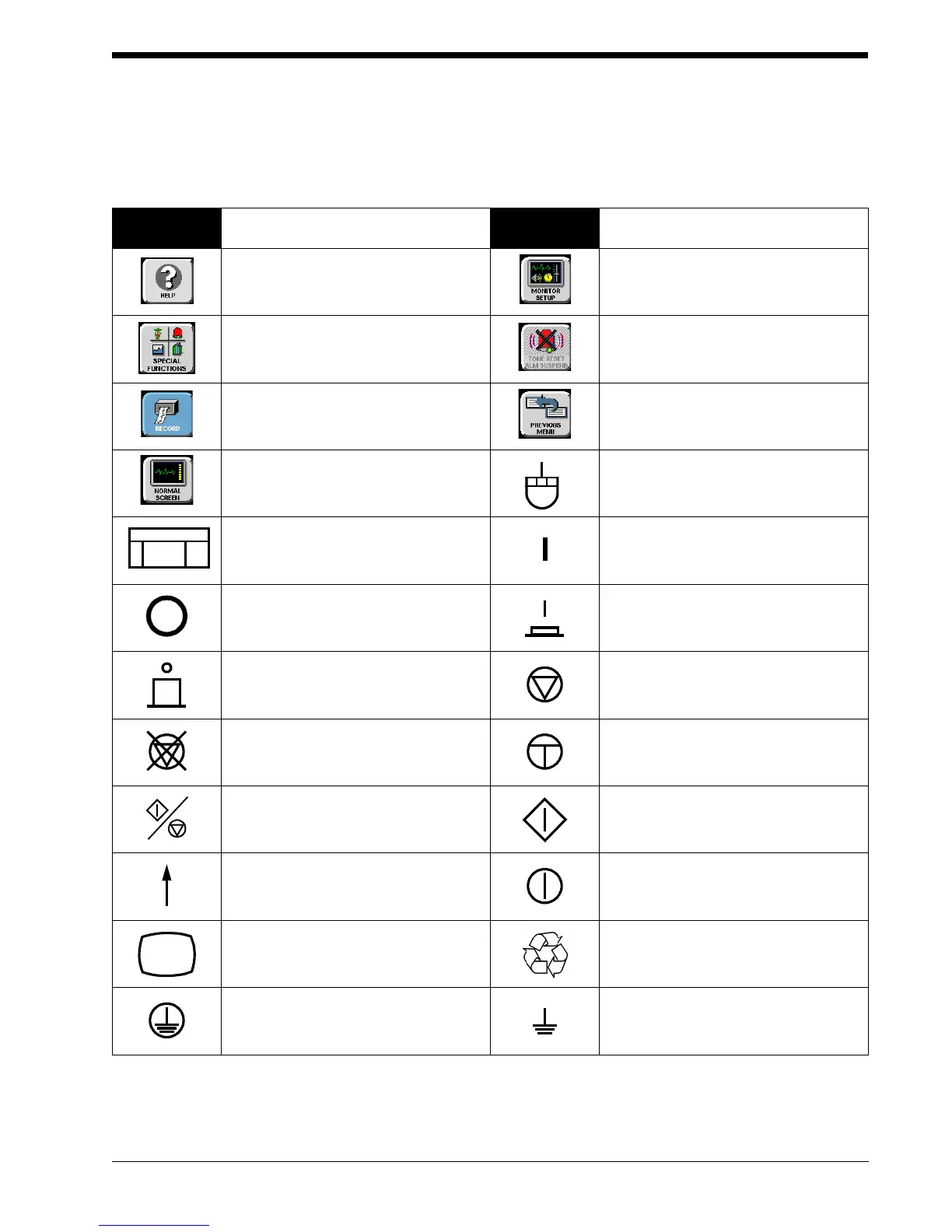 The following list of international and safety symbols describes all symbols used on Spacelabs Medical products. No one
