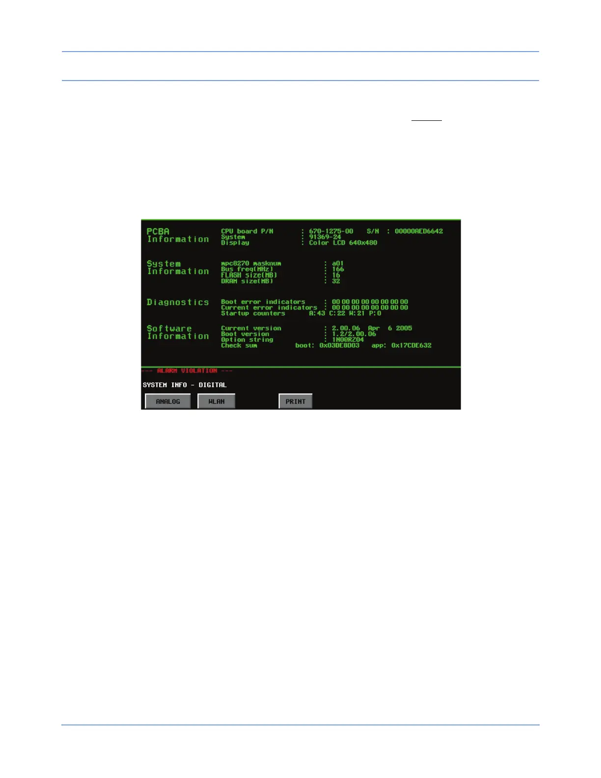 The SYSTEM INFO key in the Biomed Level menu accesses the monitor’s System Information - Digital