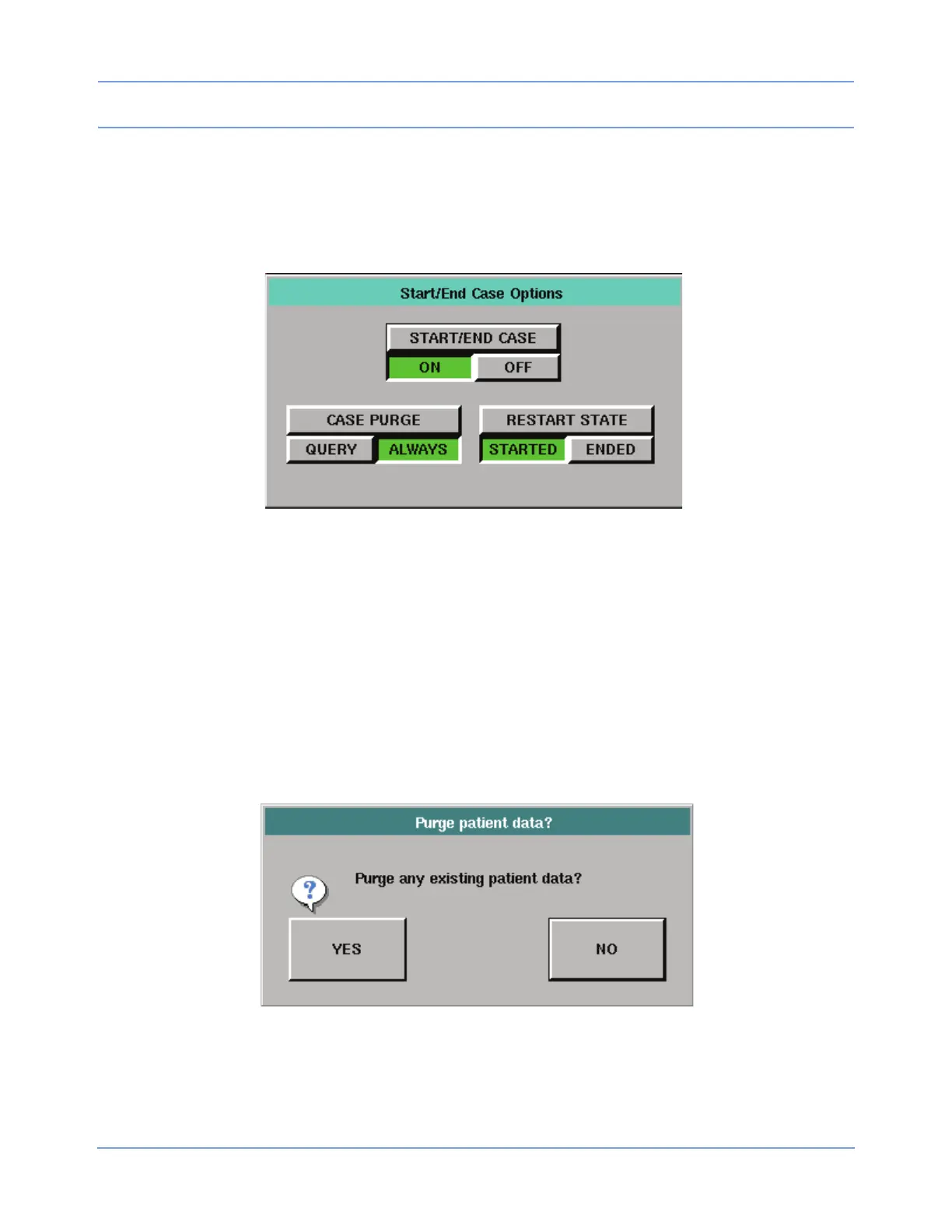 The CASE PURGE /QUERY key determines whether the Purge patient data? confirmation window (refer to