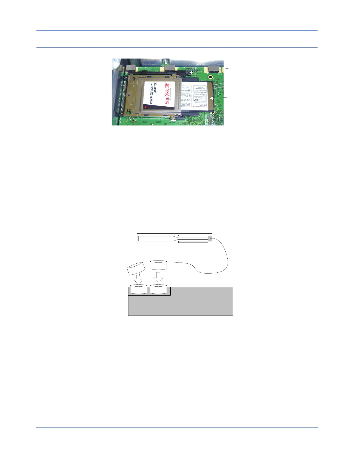 3 Insert the radio card into the Compact Flash card adapter on the main CPU PCBA. When the card is fully