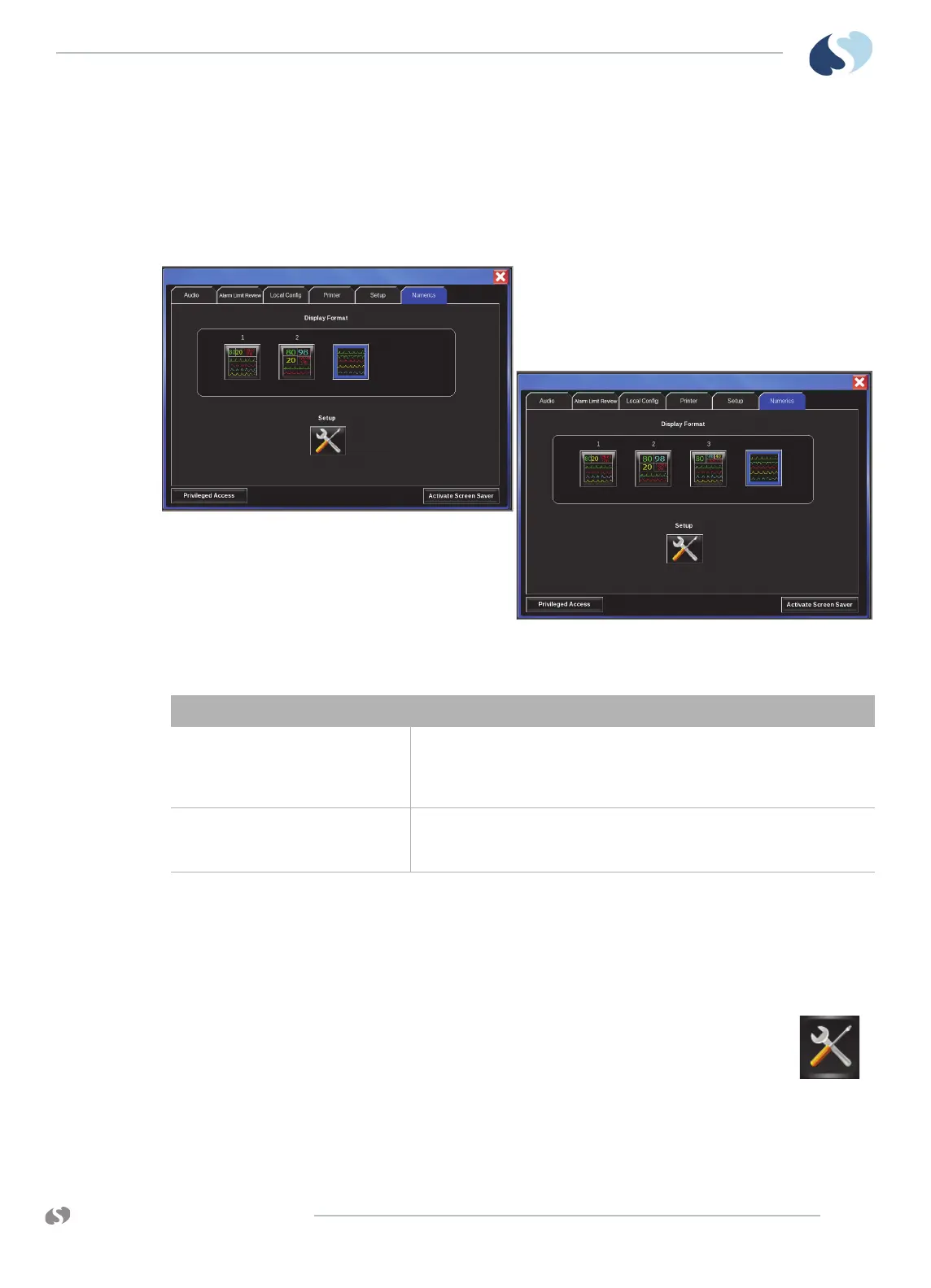 Setup This button allows the user to configure the large numerics. Refer to To
