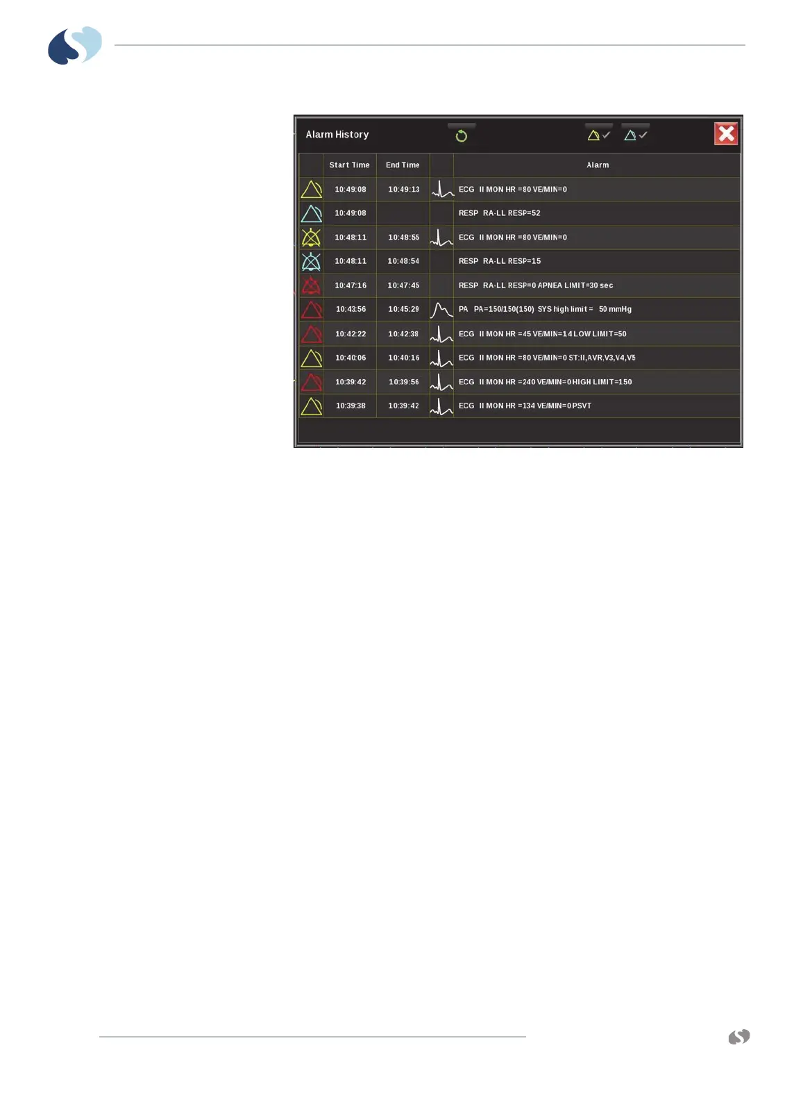 1 Touch one of the alarm priority icons at the top of the Alarm History window.