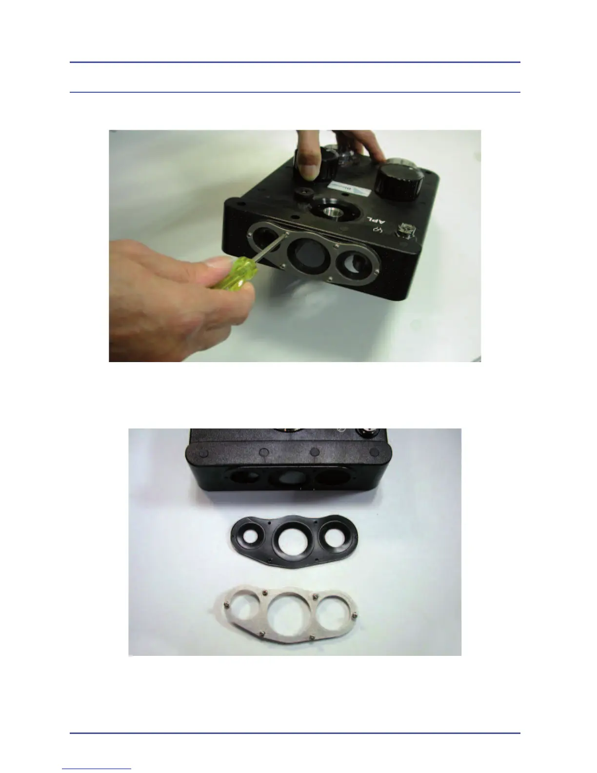 2. Remove the gasket. Do not over tighten screws during re-assembly.