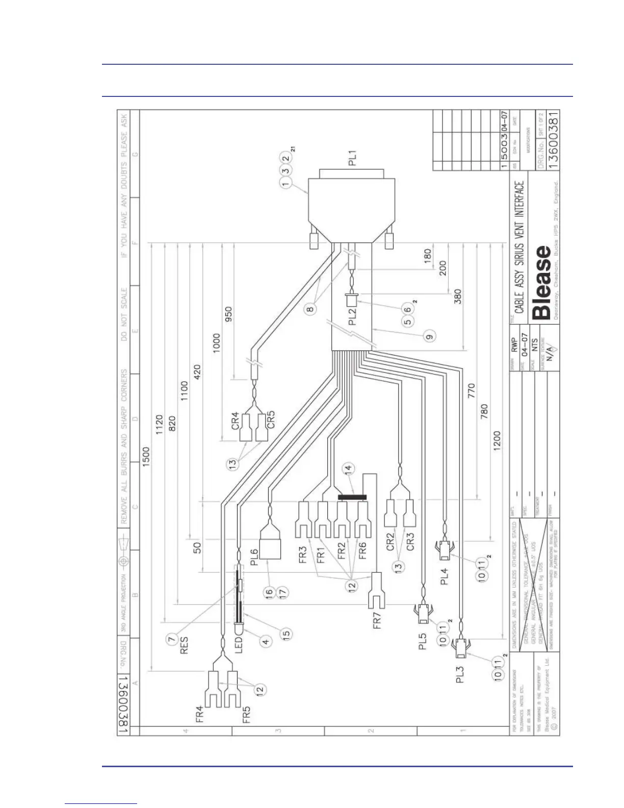 Spacelabs BleaseSirius - Schematic 26 - 13600381 Cable Assy Sirius Vent Interface Sht 1 Of 2