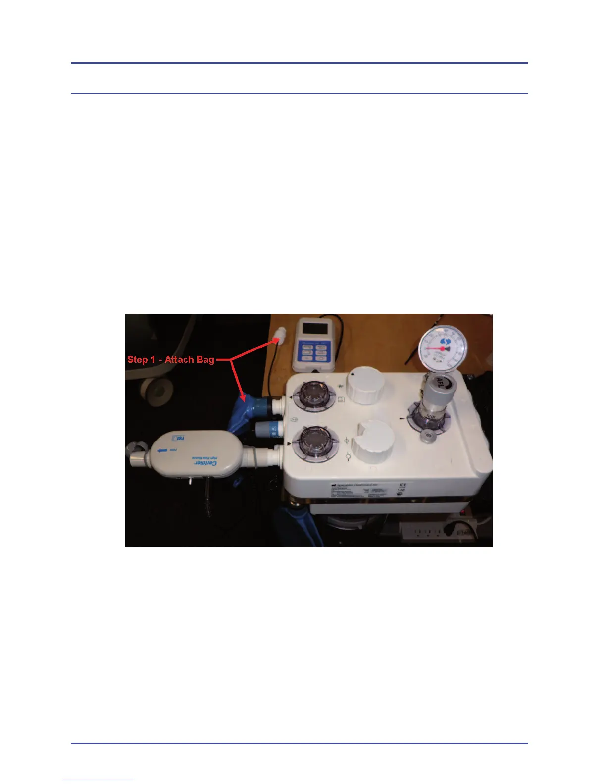 3. Remove the bag on the bag port and attach a fl ow measuring device as