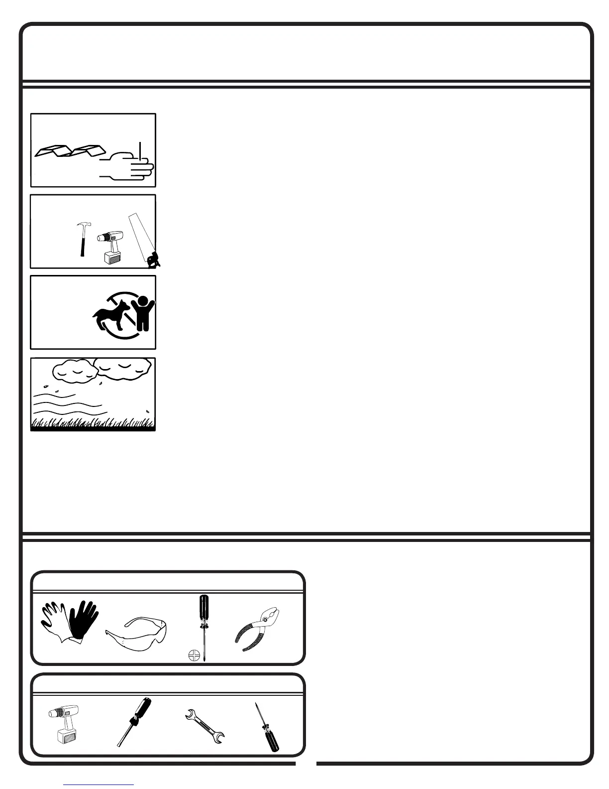 •Probeer NIET uw Opslagunit op een winderige dag te assembleren. De grote