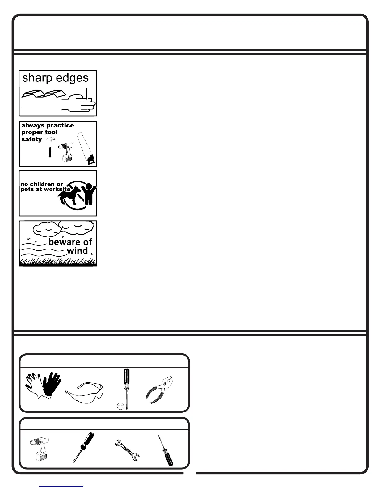 Safety precautions MUST be followed at all times throughout the construction of your Storage Unit!
