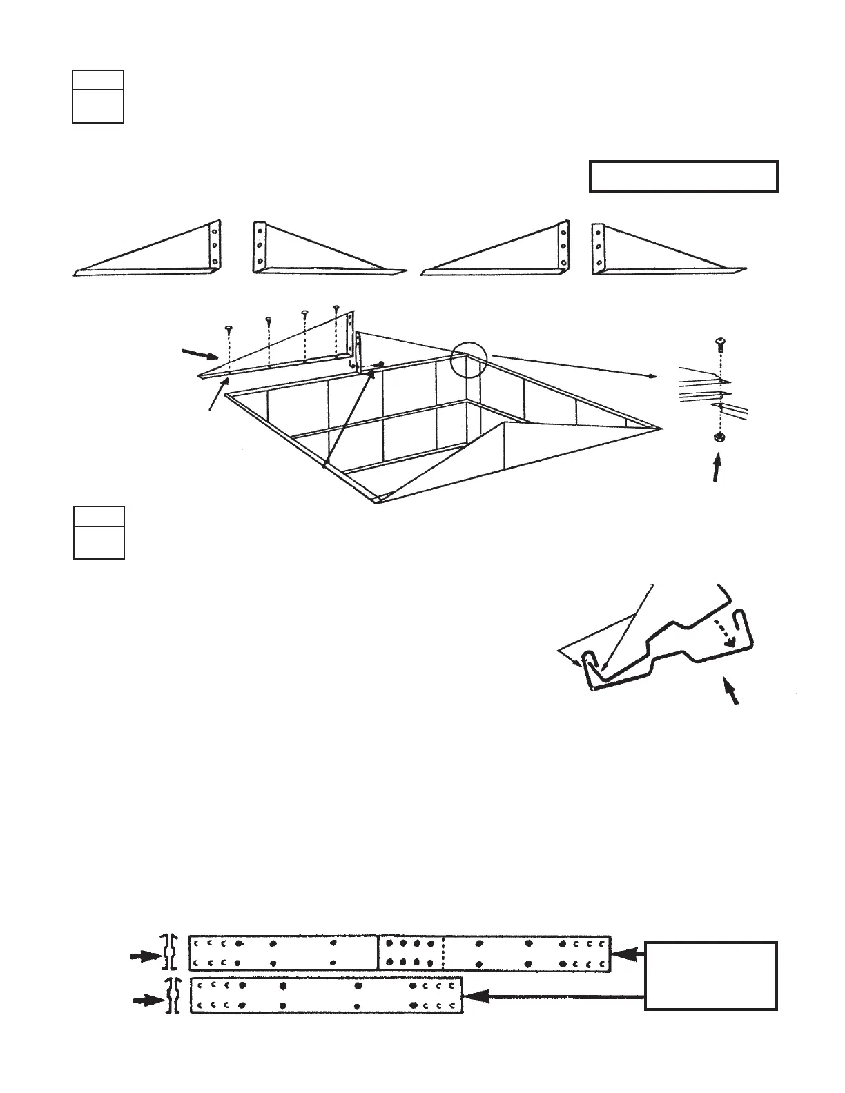 Place right rear gable in position and fasten to rear top rail with screws. See "A"
