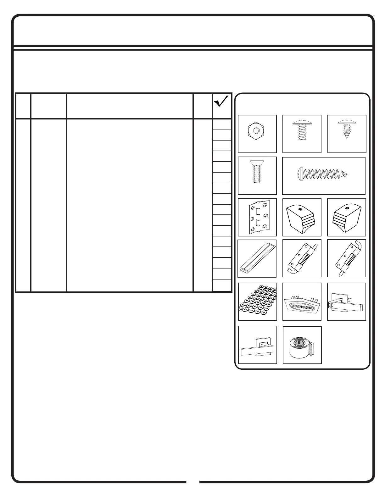 Les éléments de visserie utilisés à chaque étape sont représentés