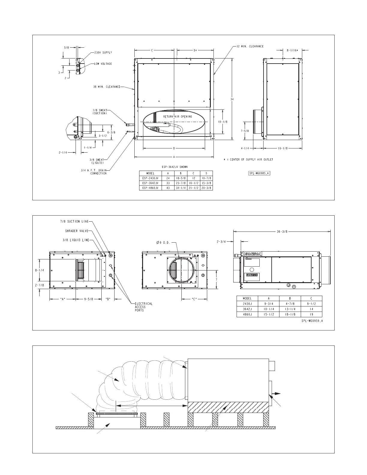 SpacePak ESP-J - Figure 2.3: Vertical Unit Dimensions and Clearances (Inches)