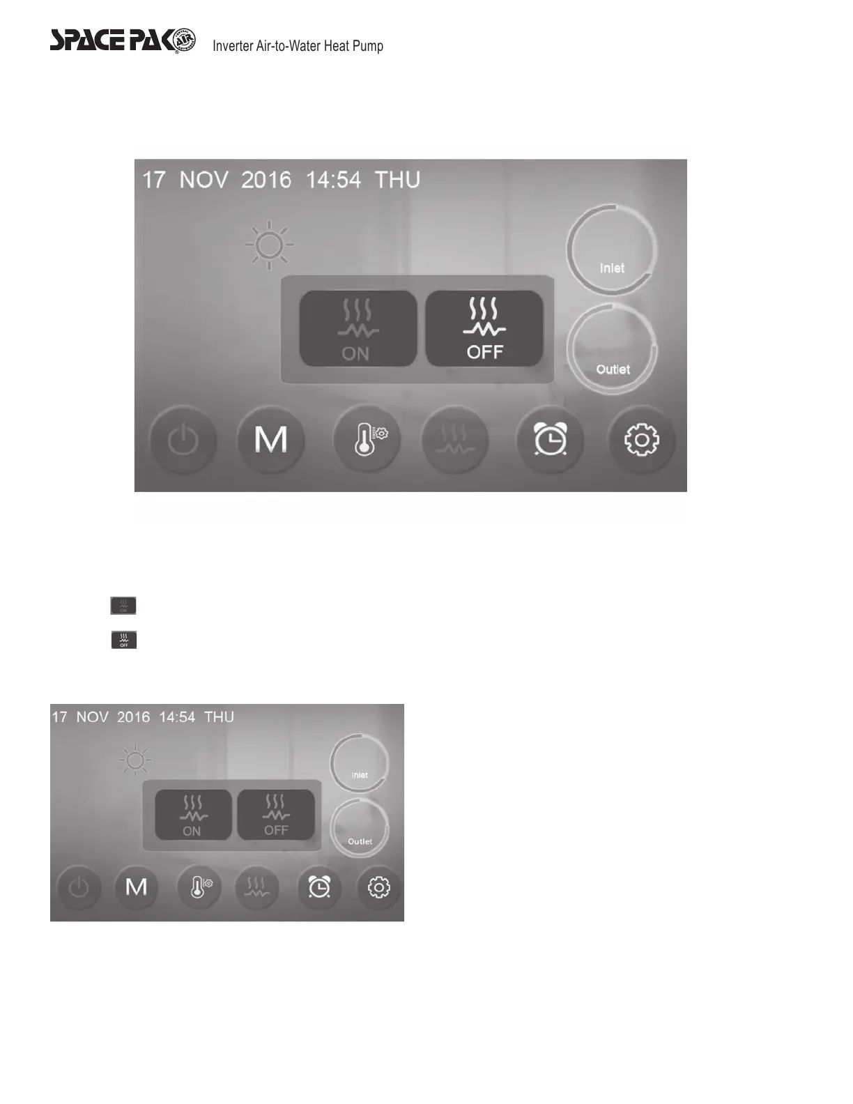 On the main interface, press fast heating key, it will display the pop-ups window of electric heater on and off.