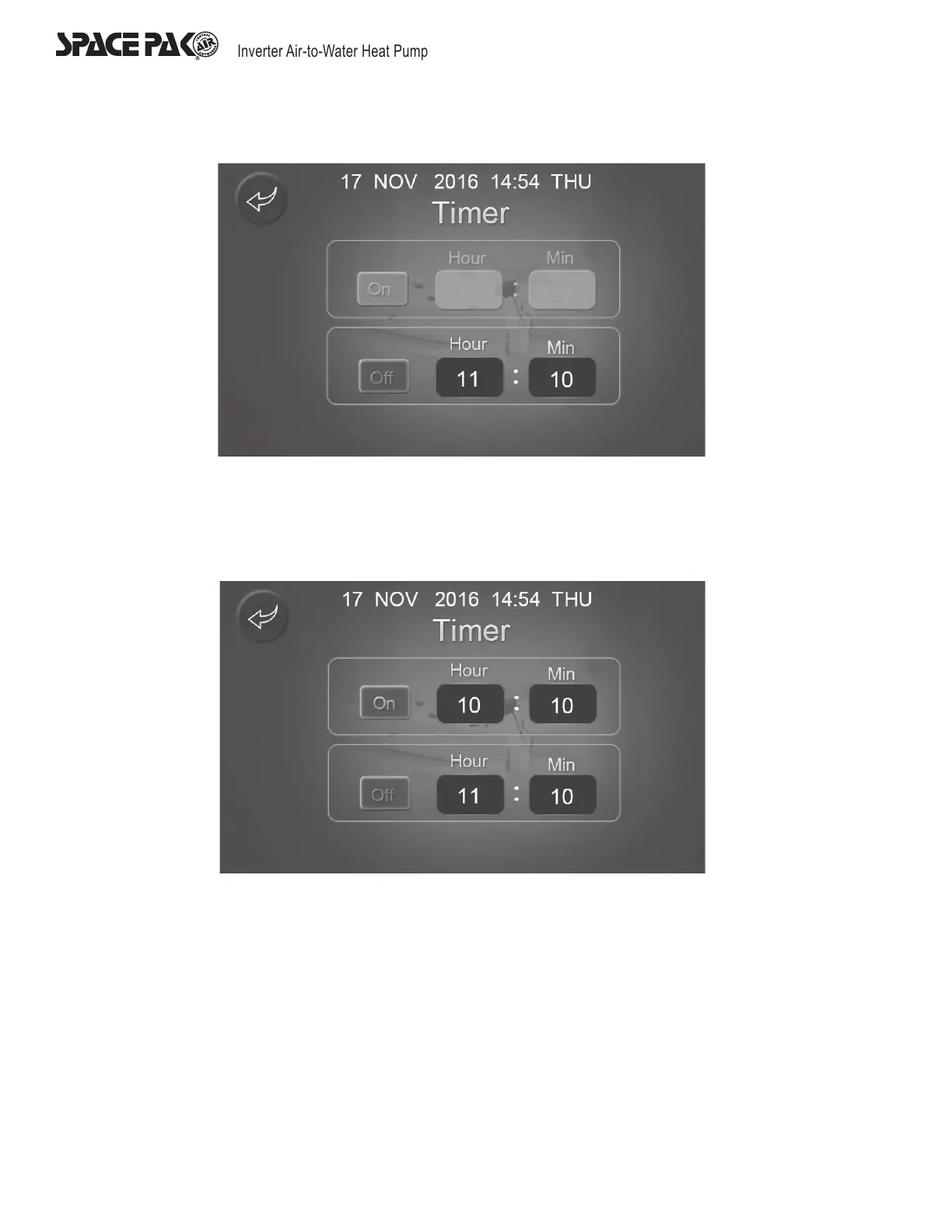 notice and read ‘Please set different time !’ as illustrated below. When the timers are different, the notice will disappear.