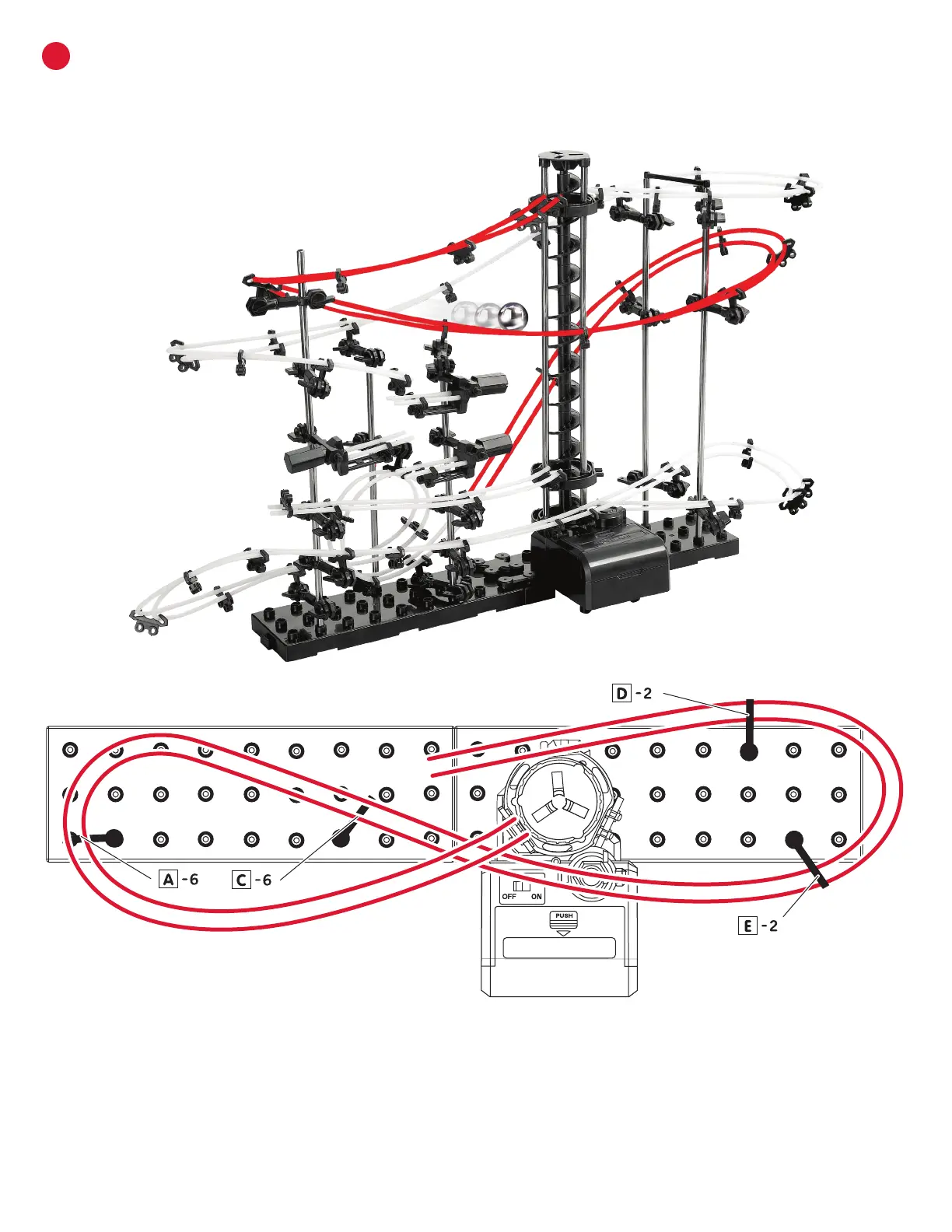 Step1: Starting at the top Elevator Ring on the left side Rail Clip connect Rail A (245 cm). Keeping rail