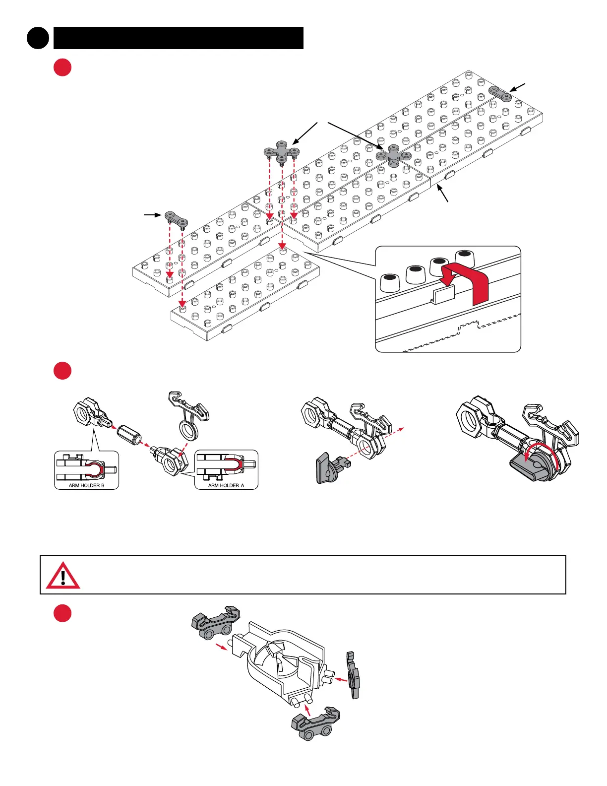 Step 1: Attach one Arm Holder A and one