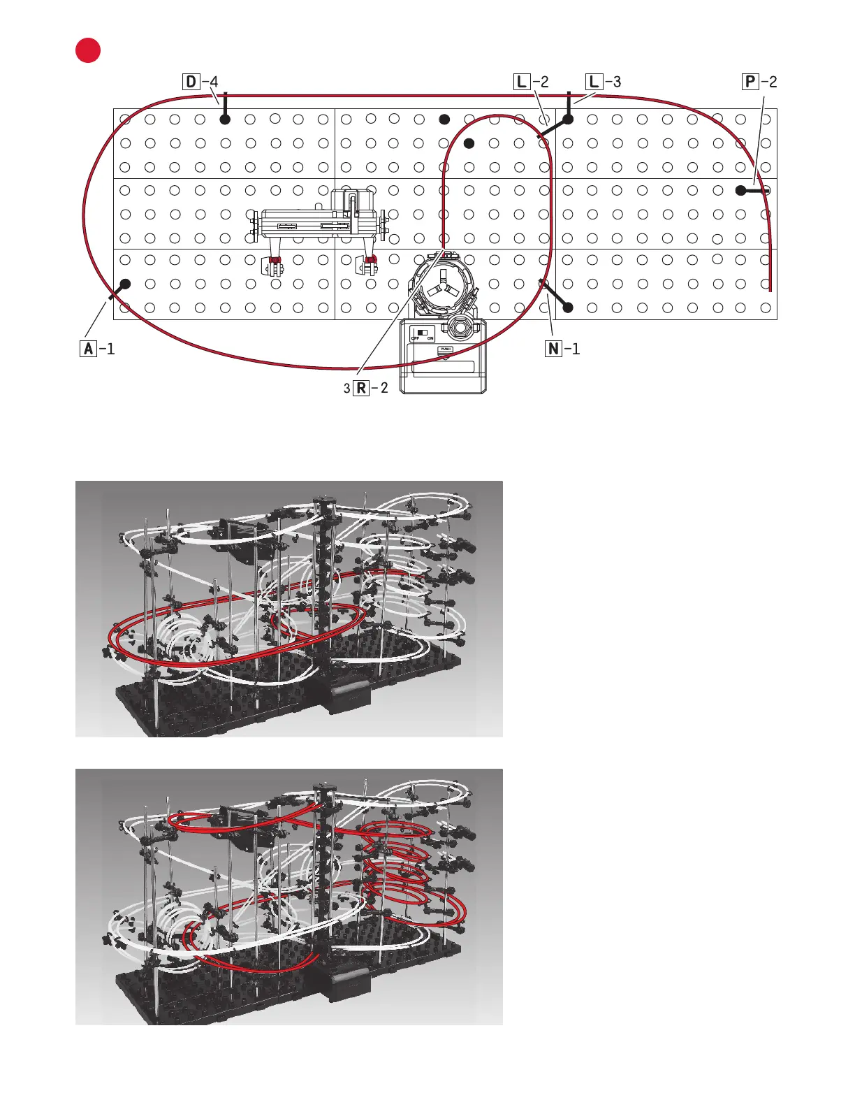 Step 1: Starting at the middle center Elevator Ring (3R-2) connect Rail E (200 cm) to Rail Clip. Continue rail