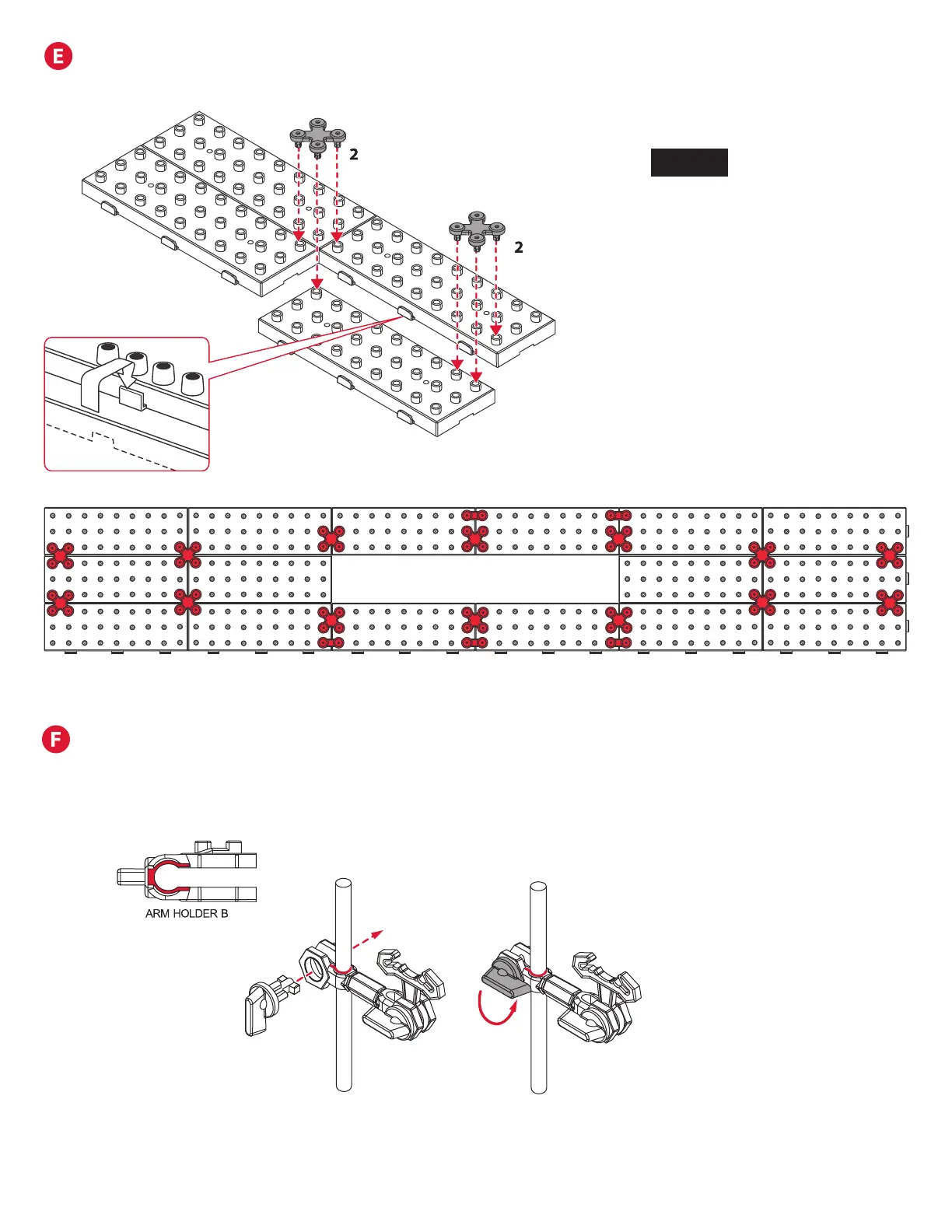 Step 1: Slide Arm Holder B of each arm on to a shaft and lock in place with Arm
