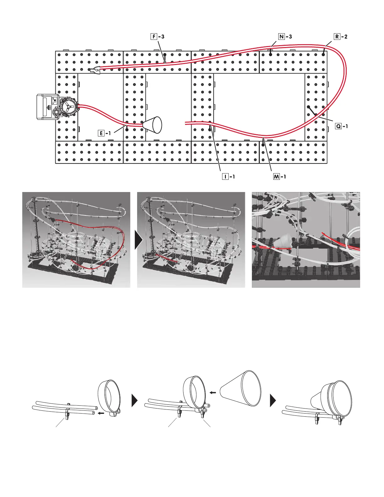 Step1: Start by attaching rail F (150 cm) to Rail Clip of