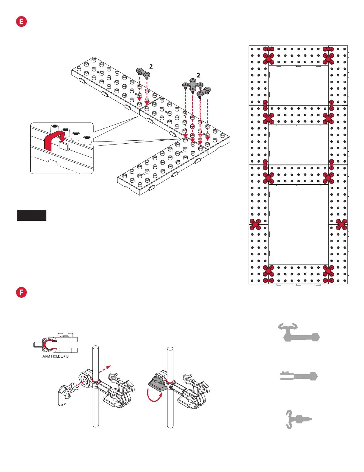 Step 1: Slide Arm Holder B of each arm on to a shaft and lock in