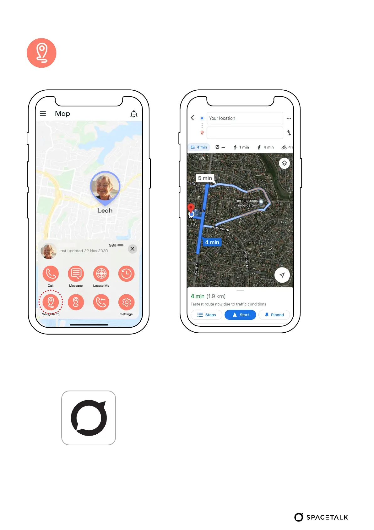 Spacetalk Life - Navigating to Device Location