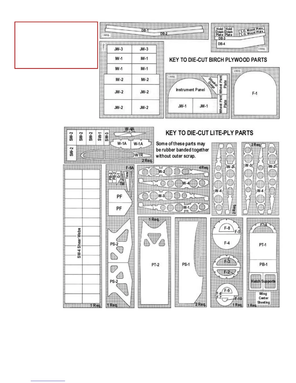 Birch Plywood Parts" and the "Key to Die-Cut Lite-Ply Parts", to mark the identification numbers on the corresponding plywood